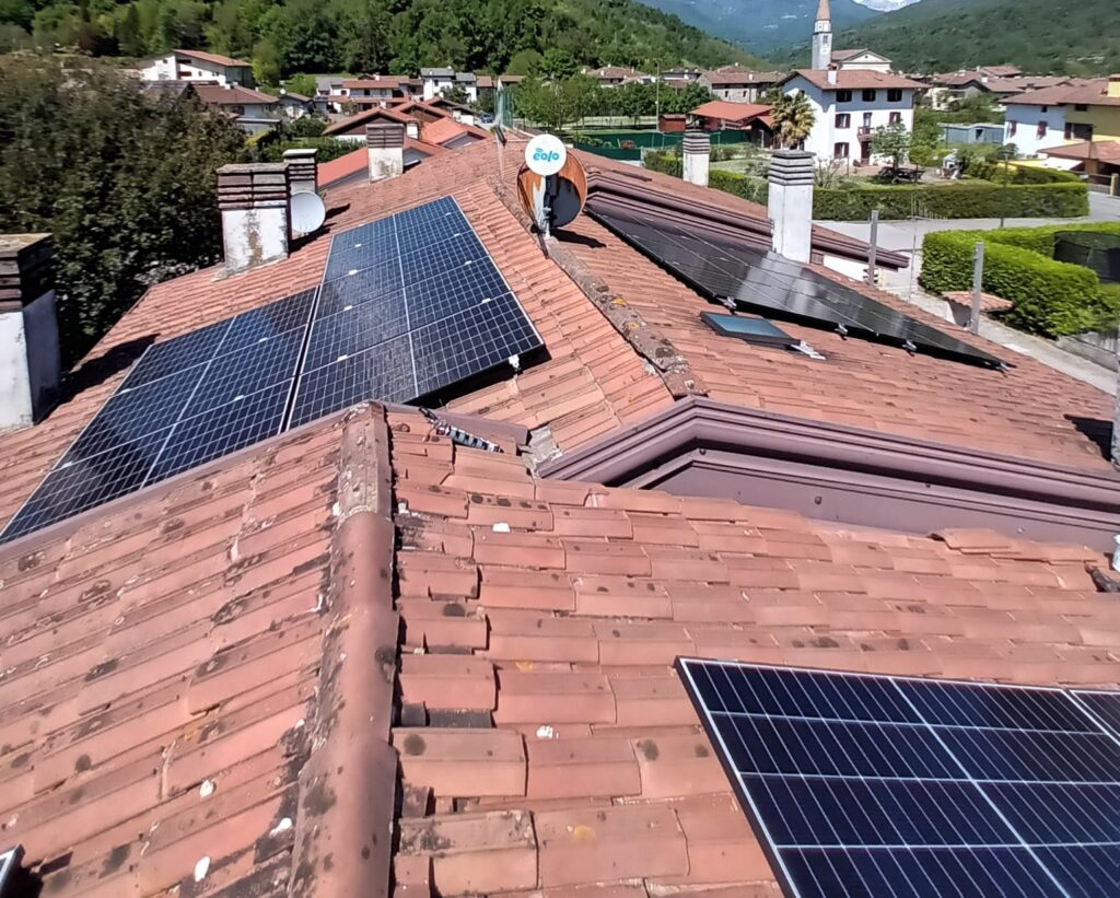 Realizzazione: su queste case a schiera sono stati realizzati 2 impianti fotovoltaici ognuno da 7,04 kW con inverter da 6 kW e un accumulo da 10 kWh.